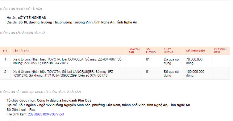 Thông báo lựa chọn tổ chức đấu giá tài sản